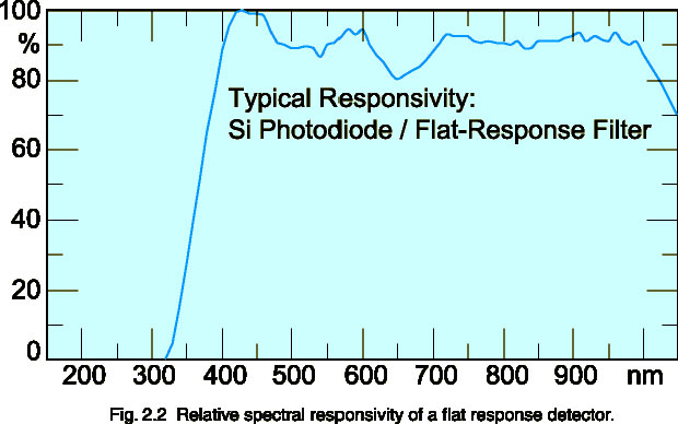 Since silicon photodiodes are more sensitive to light at the red end of the spectrum than to light at the blue end, radiometric detectors filter the incoming light to even out the responsivity, producing a "flat response". This is important for accurate radiometric measurements, because the spectrum of a light source may be unknown, or may be dependent on operating conditions such as input voltage.